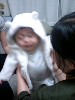 今回買った服は、フードに耳がついてるモコモコしたパーカーなんだけど、